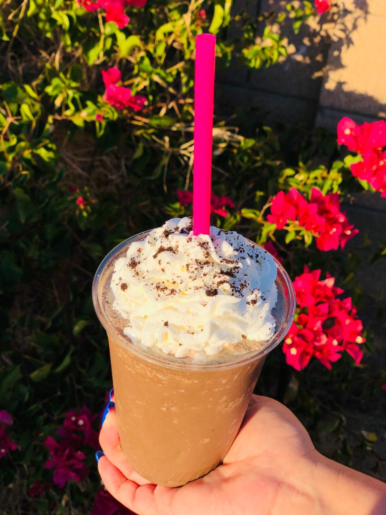 Similar to a Mocha frap with chocolate chip pieces blended in.