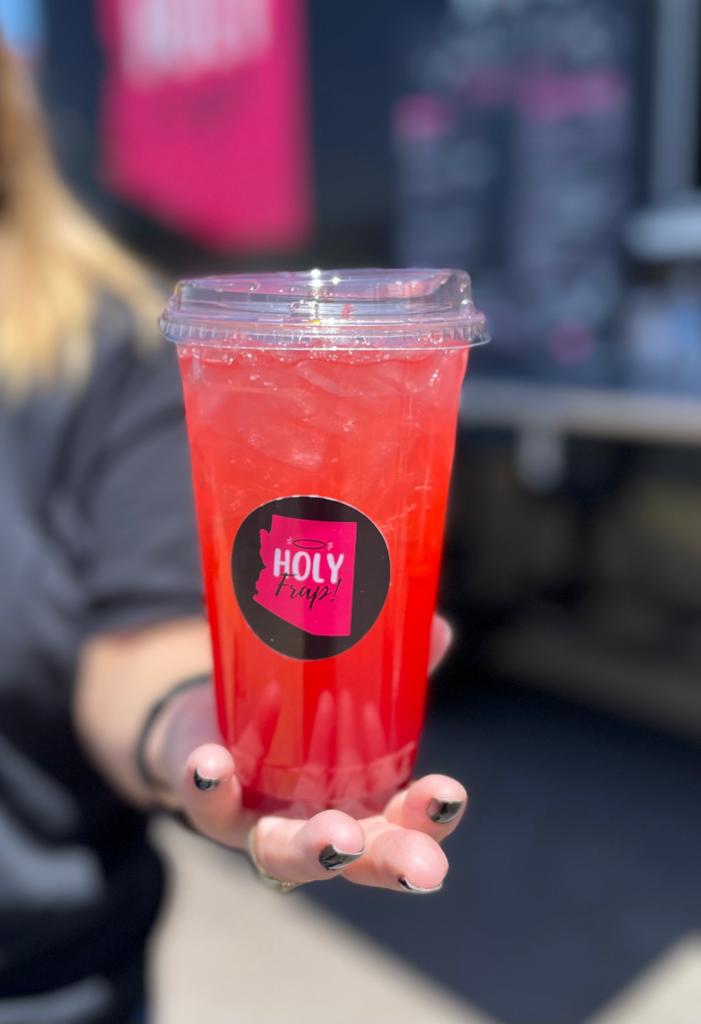 Strawberry Acai Refresher. Non-caffeinated. Can add flavorless caffeine/energy. Modify with Lemonade or sub a redbull!