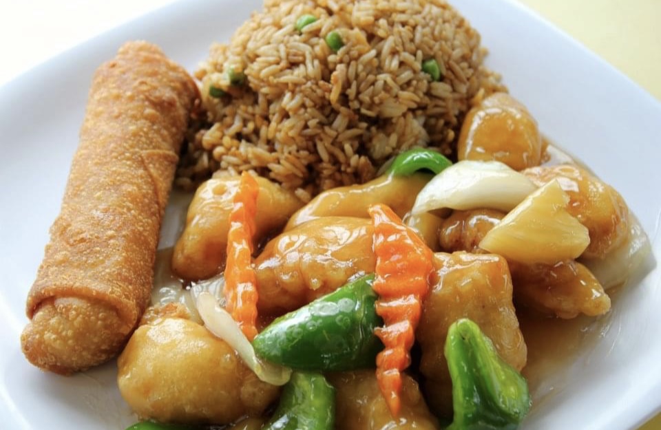 Fresh cut chicken breast dipped into our homemade batter, deep fried to perfection and topped with our signature sweet and savory sauce with bell peppers, carrots onions and pineapples. Dinner is served with a side of chicken or pork fried rice And a famous chicken or pork Bounthahn’s Eggroll
