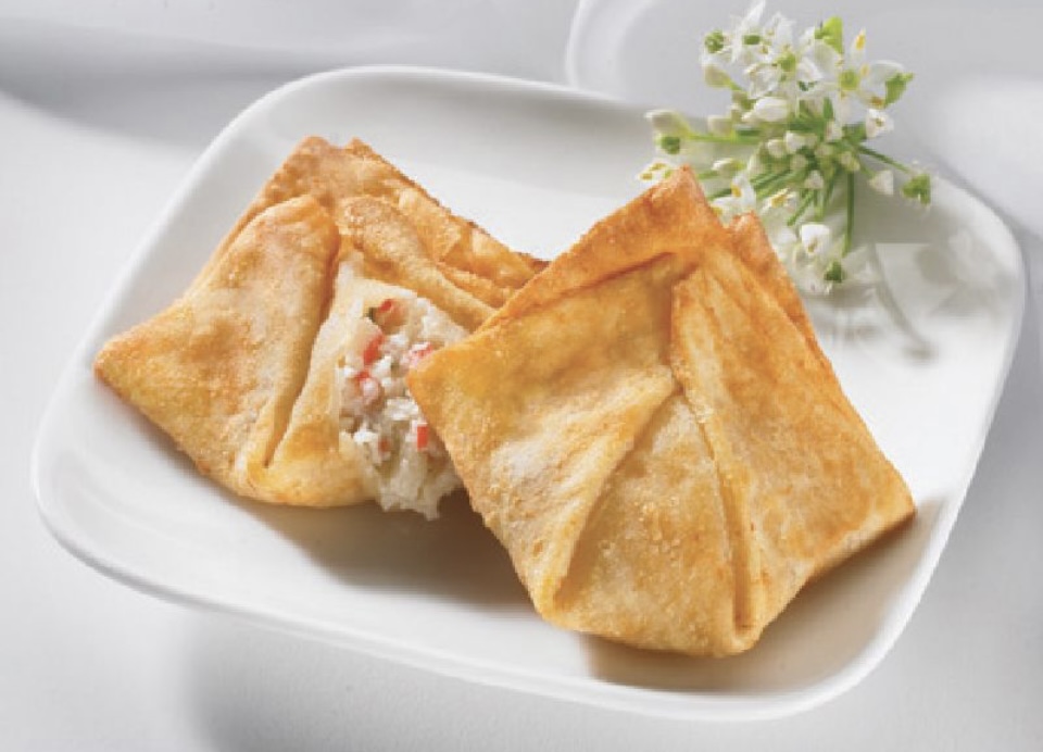 3 crab Rangoons, wonton filled with cream cheese and imitation crab, deep fried to perfection