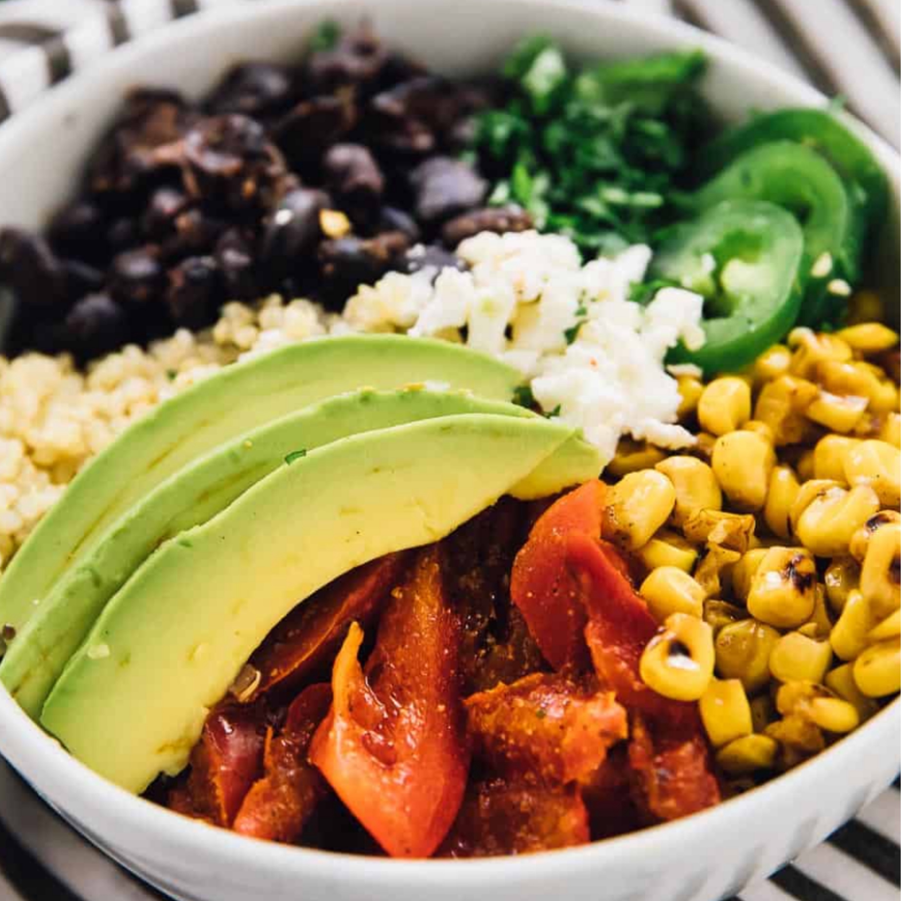 Mexican street corn, grilled chicken, cilantro lime rice, jalapeños