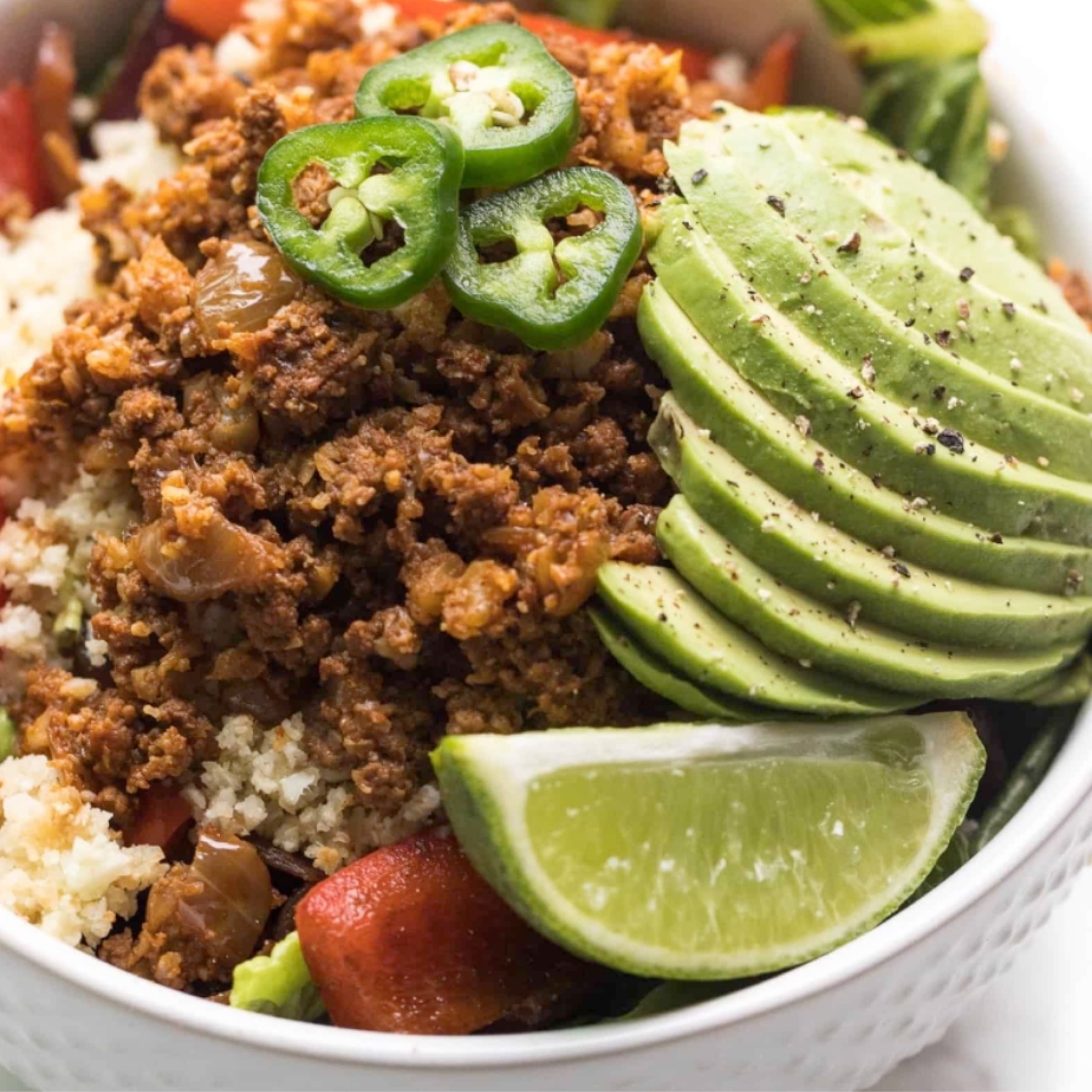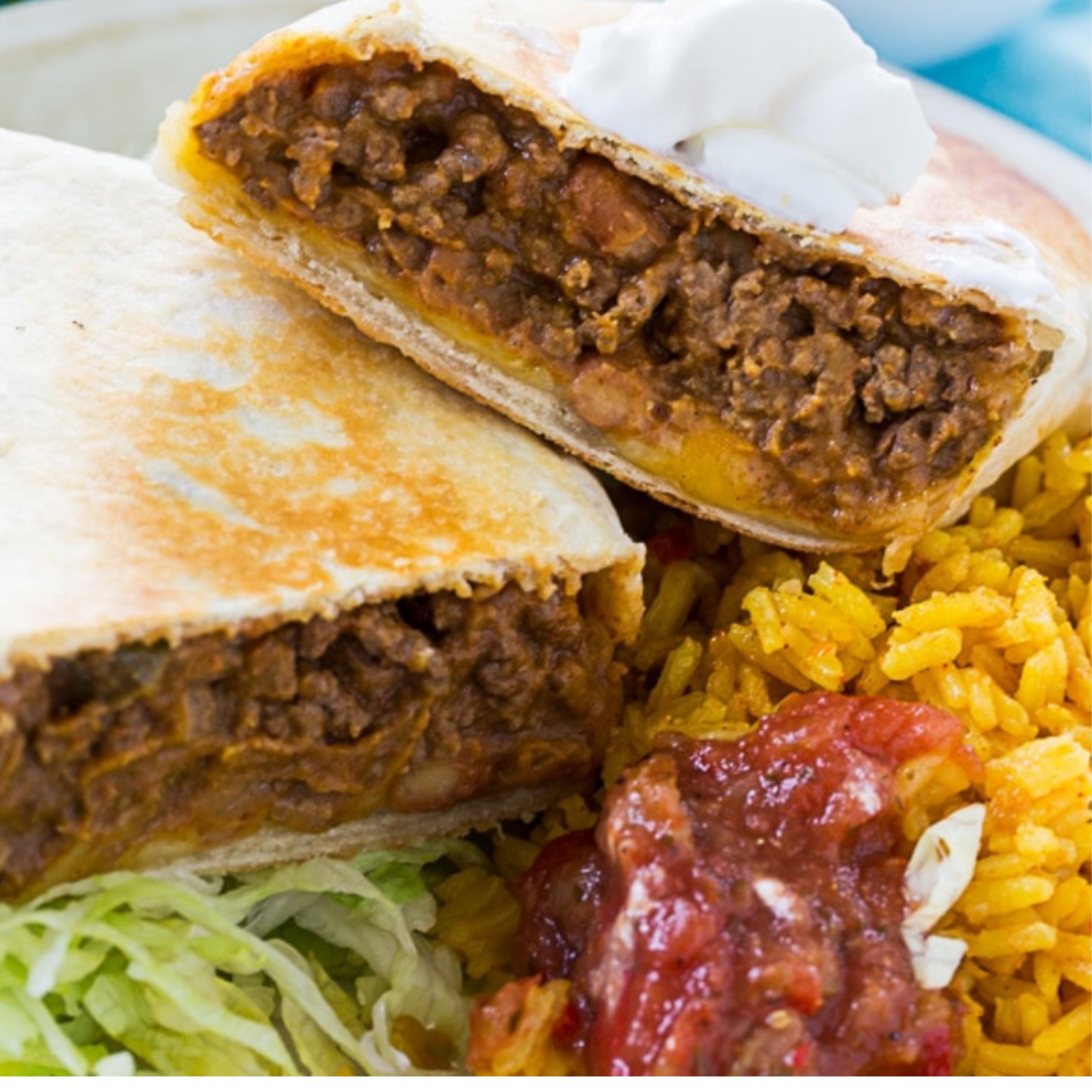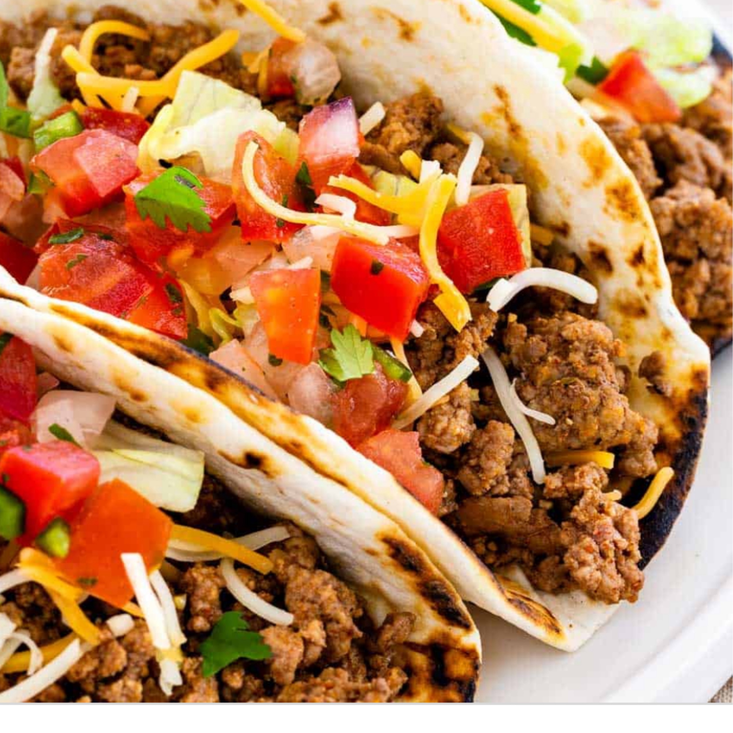 Seasoned ground beef, lettuce, tomatoes, and cheese