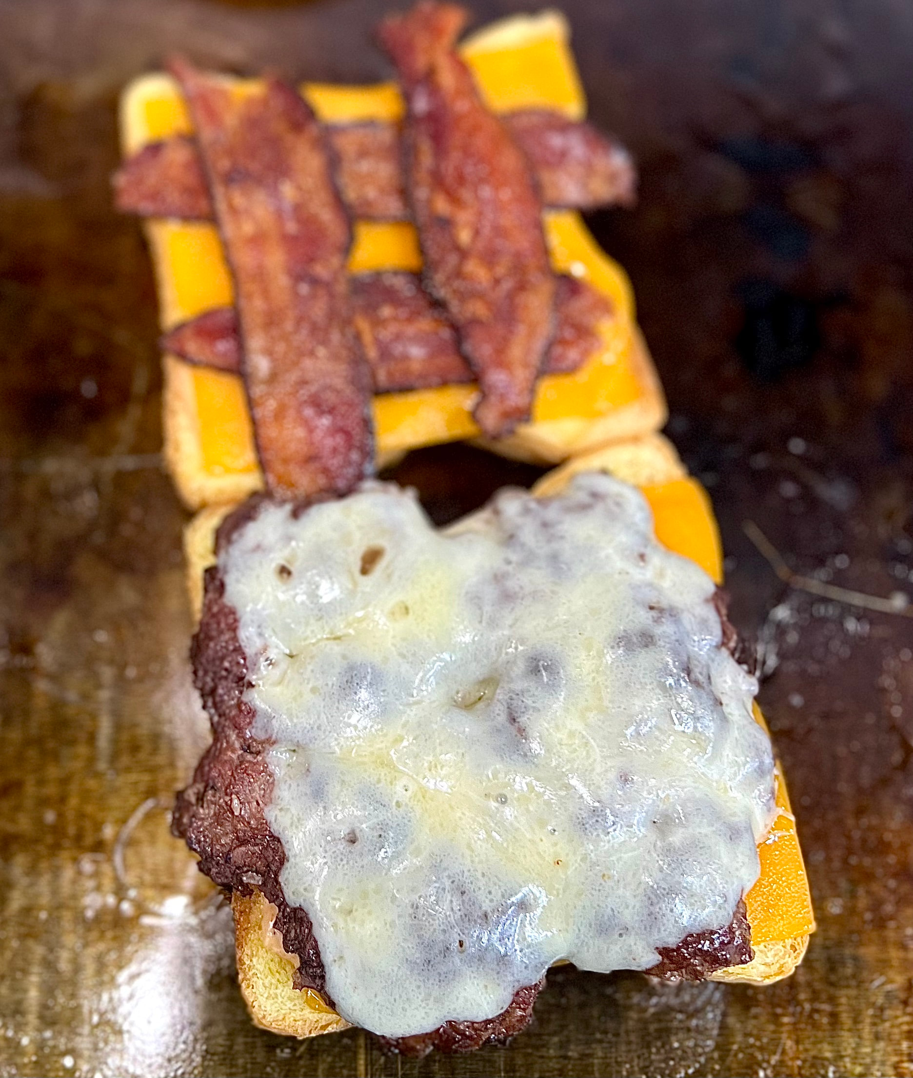 A flavor packed melt loaded with a smash patty, bacon strips, melted Cheddar and our signature SMASH sauce on thick sliced Texas toast. Served with fries.