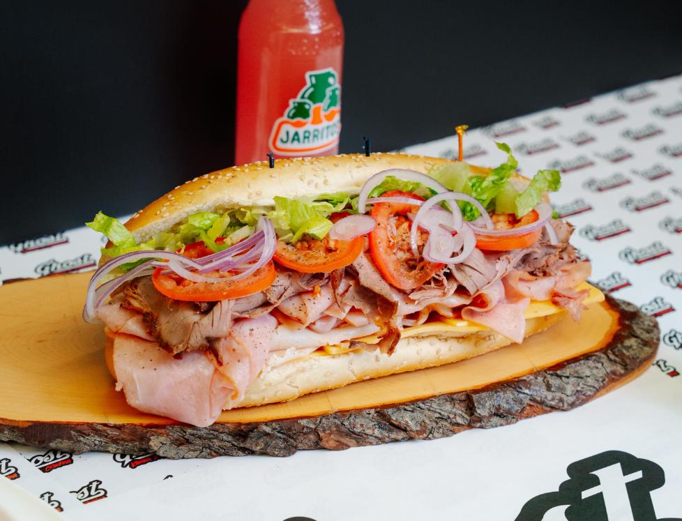 Fresh shaved roasted turkey, ghost pepper cheese, chipotle mayo, sliced tomatoes, sliced jalapeños, shaved red onion, shaved lettuce on local semolina bread