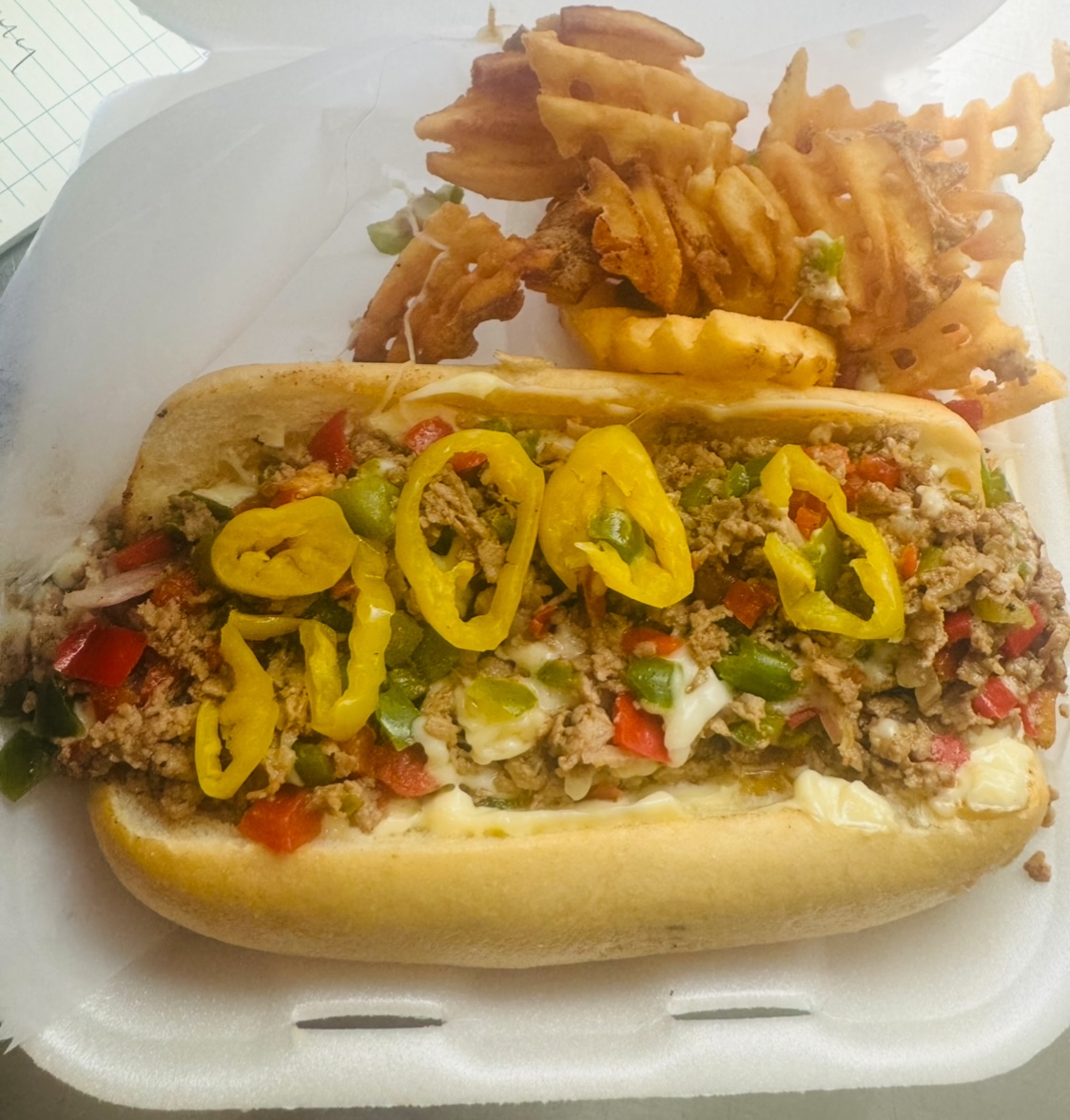 Grilled Shredded Steak Or Chicken Smothered With Onions, Peppers & Cheese