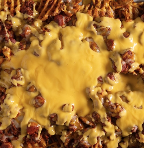 Lump Crab & Shrimp with onions, peppers & Cheese drizzled with Uptown Sauce served over seasoned waffle fries