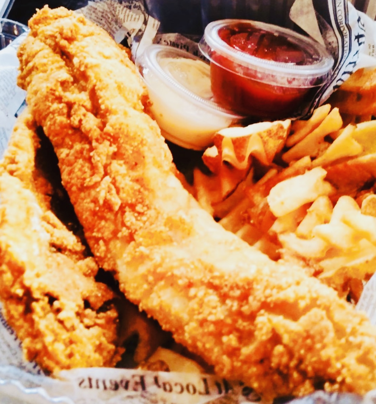 Deep Fried Chicken Tenders Served W/ Seasoned Waffle Fries