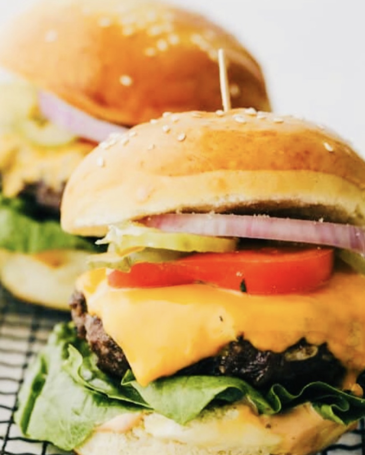 Veggie or impossible burger topped with lettuce, tomato, onions and a pickle, served with seasoned waffle fries Add Cheese +$.50