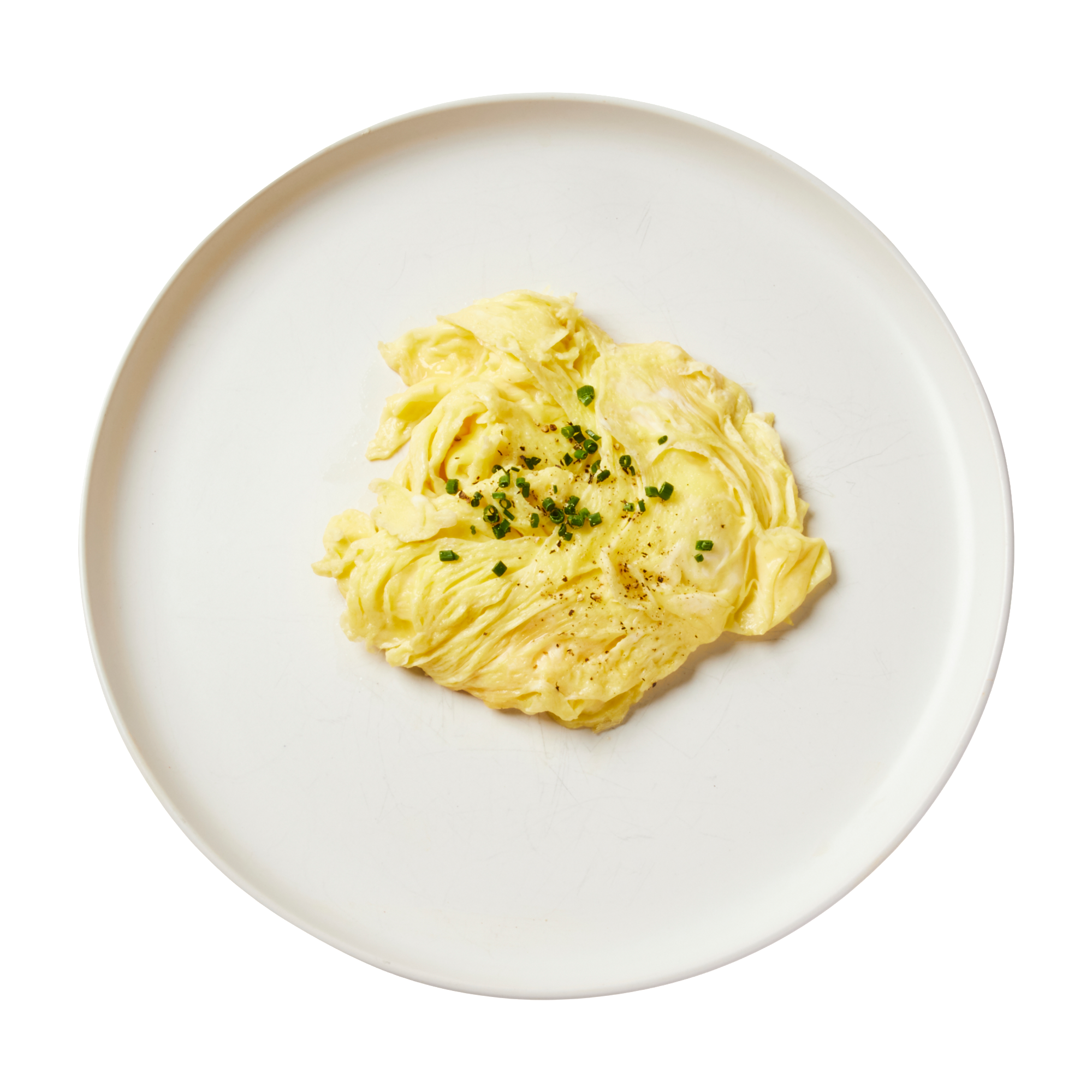 Scrambled eggs with a fluffy texture and a rich, buttery flavor.