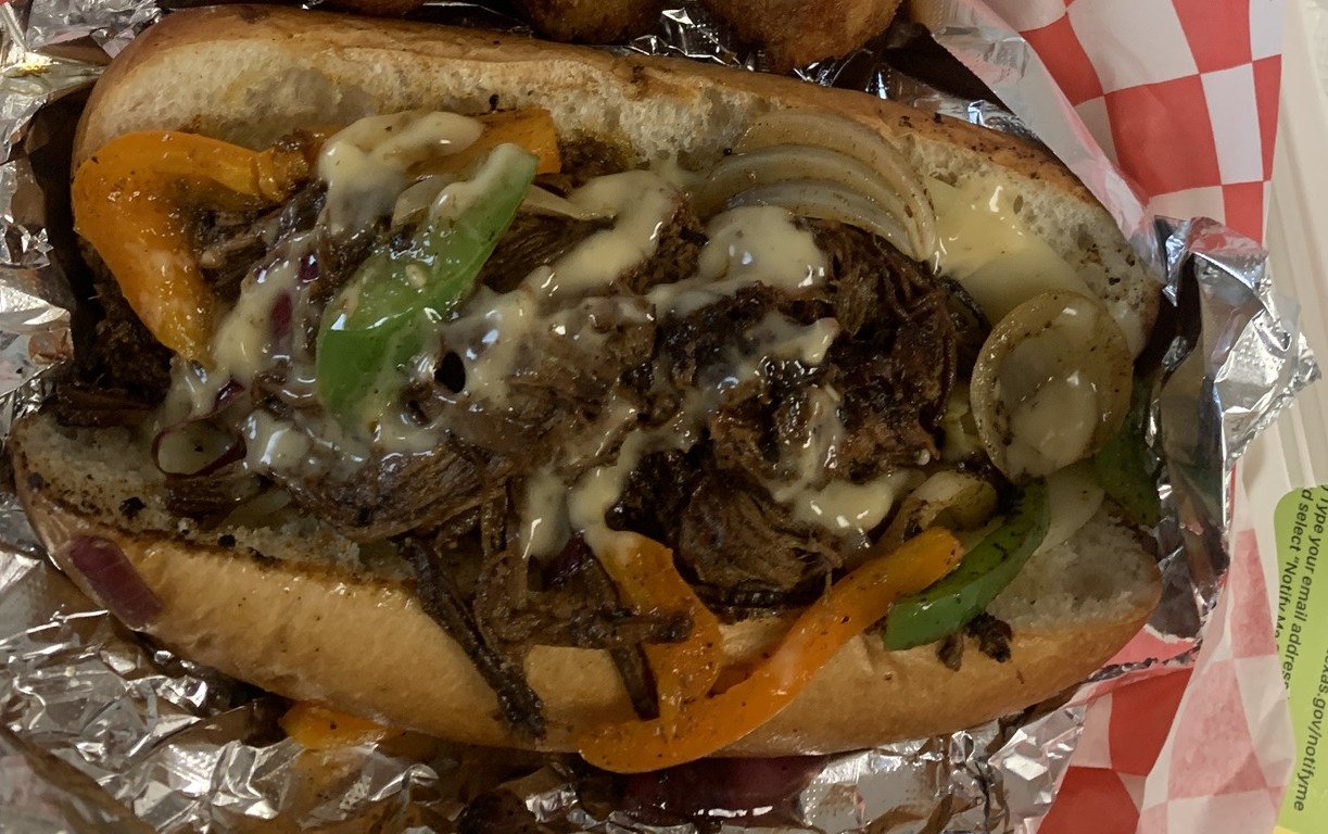 Our own smoked brisket with bell peppers, onions, provolone cheese, and our chipotle horseradish sauce served on a hoagie bun.