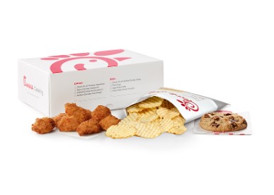 8-ct Nuggets with a Fruit Cup and a Chocolate Chunk Cookie. Includes 1 Chick-fil-A Sauce. Drink NOT included.