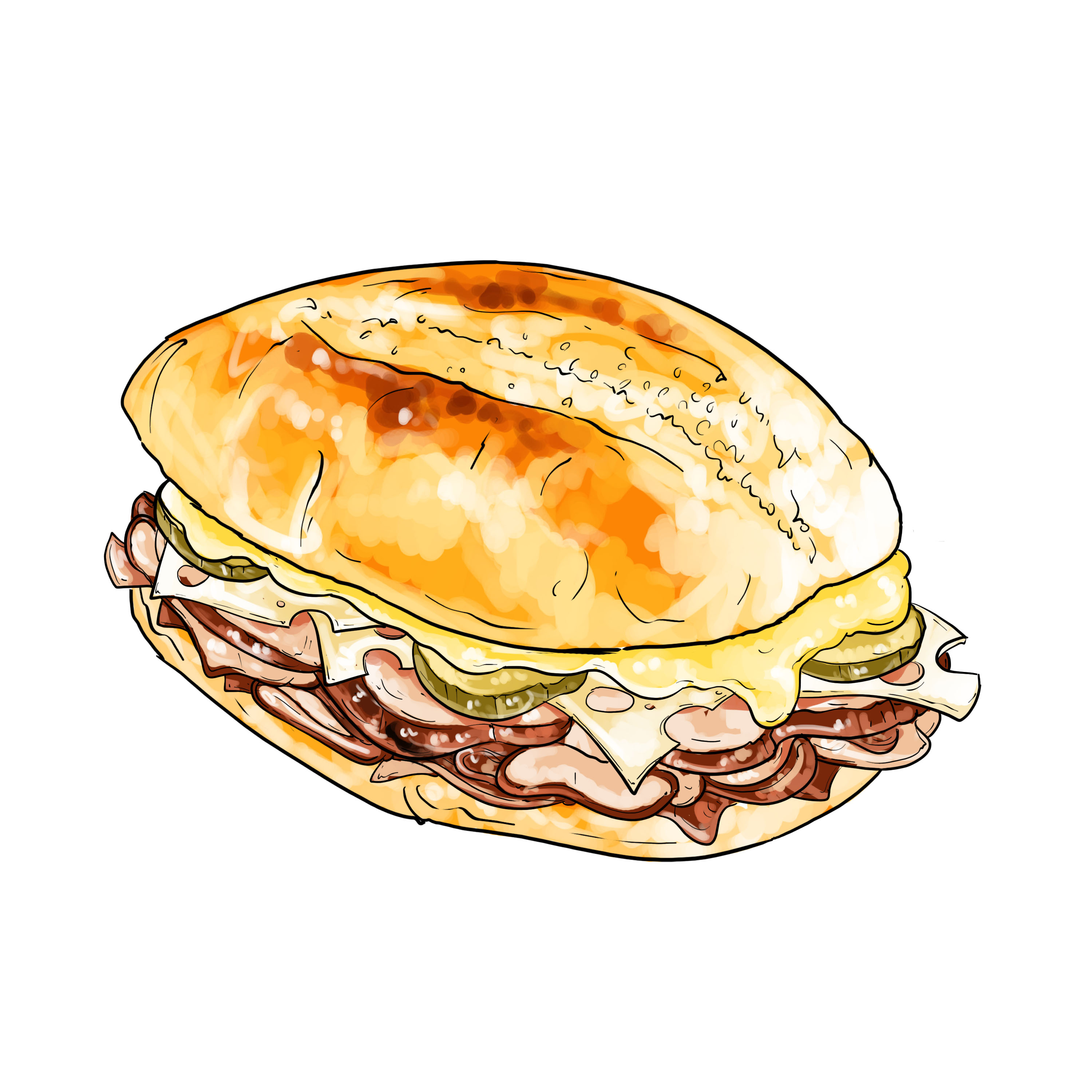 Slow roasted pork, ham, swiss cheese, pickles, mayo, mustard aioli, all on a toasted, crispy, pressed french bread.