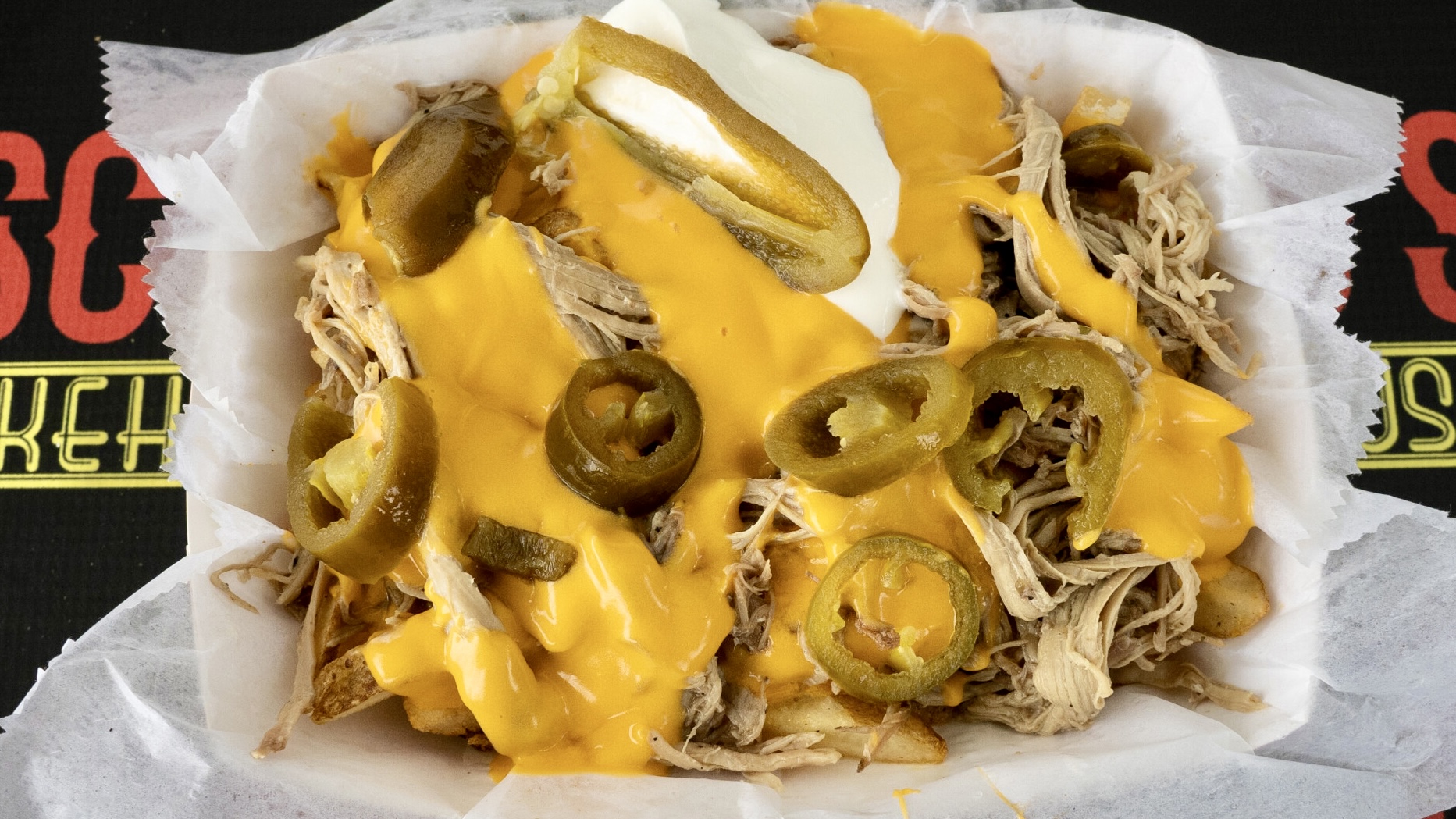 A hearty plate of fries piled high with your choice of slow-smoked chicken, pulled pork, or brisket, then drizzled with Cisco’s Sweet ’n Spicy BBQ Sauce and Cisco's Dipping Sauce.