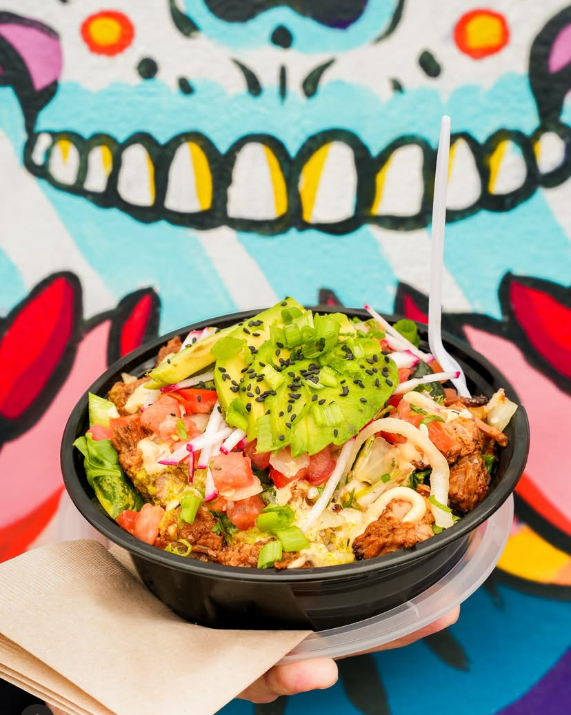 turmeric basmati rice, pinto beans, coleslaw, chipotle aioli, bulgogi sauce, radish, sesame seeds, avocado