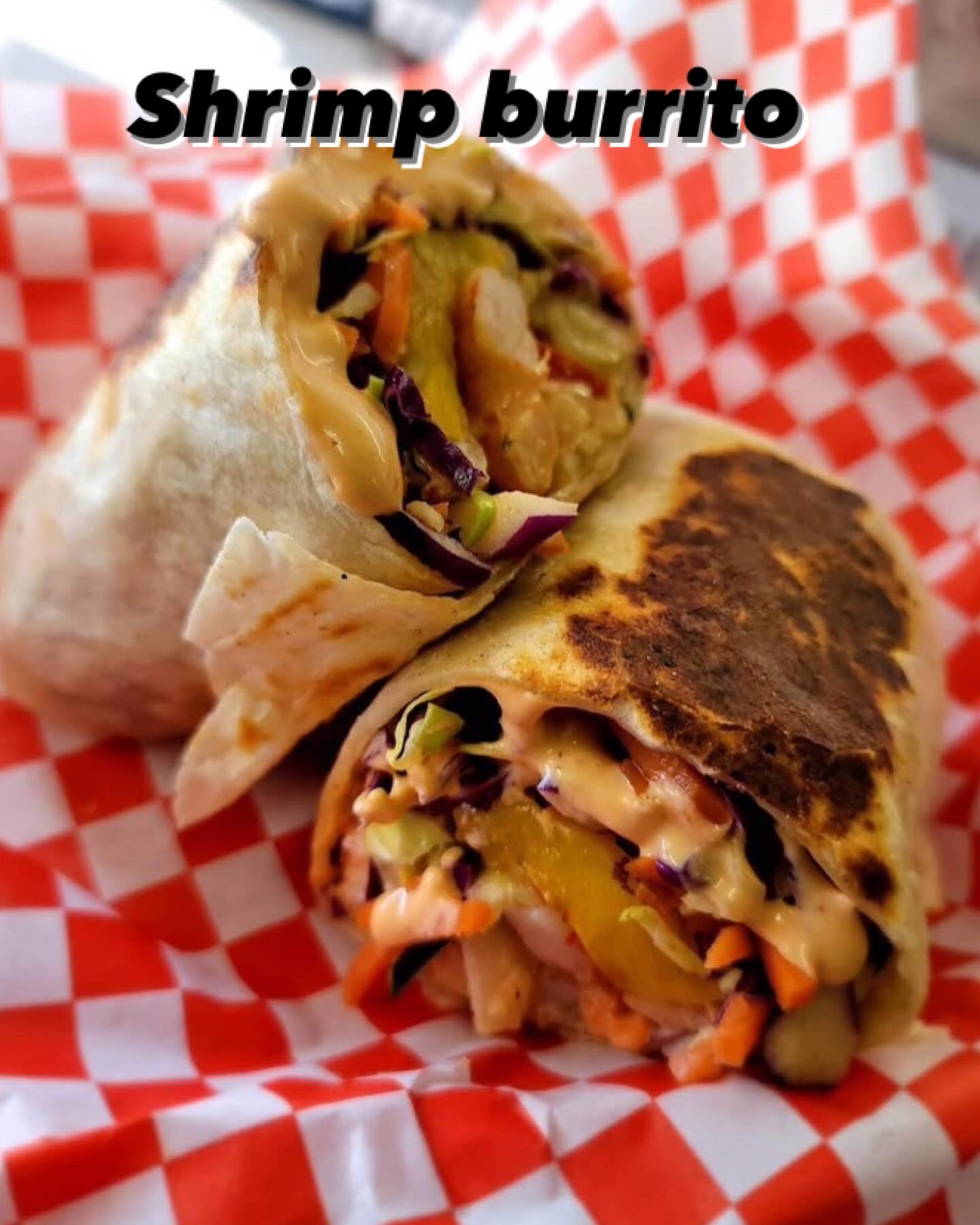 flour tortilla, coleslas, pineapple, pico de Gallo, chipotle aioli, bulgogi sauce, and 6 pieces ofgrilled shrimp