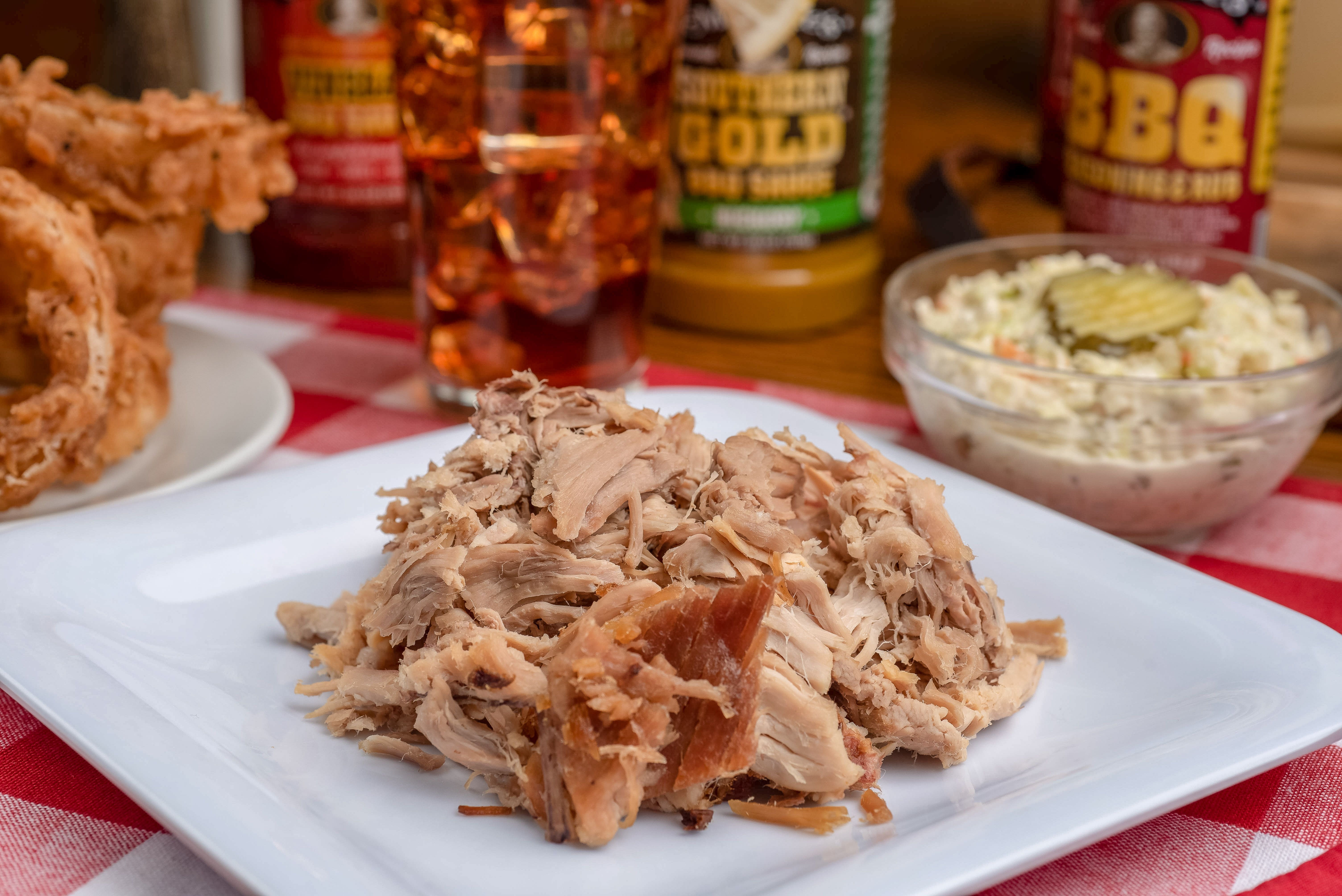 Juicy slow cooked BBQ chicken pulled off the bone