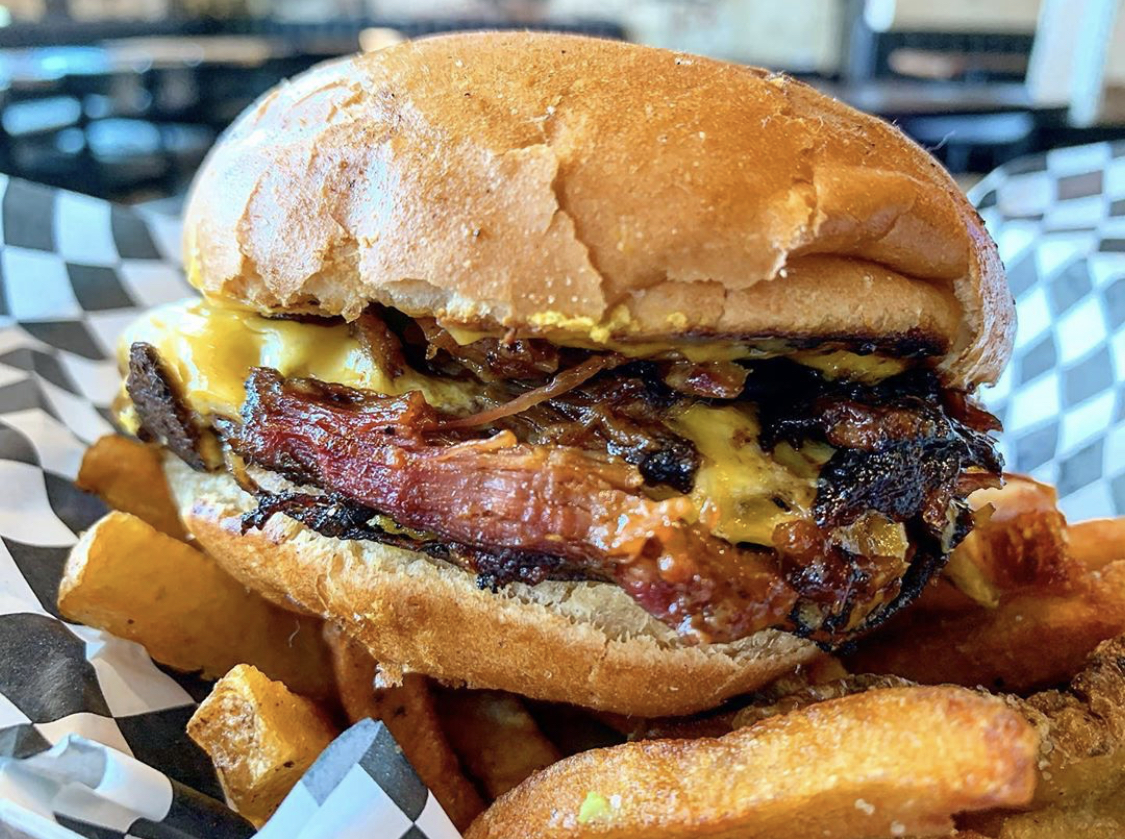 Our 12-Hour Mesquite & Pecan Wood Smoked Pulled Pork ADDED to the Signature MOB Burger on a La Baguette Fresh Baked Bun served with Hand Cut Fries