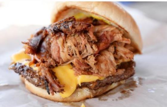 Our 12-Hour Pecan & Mesquite Wood Smoked Pulled Pork ADDED to the Signature MOB Burger on top of a La Baguette Fresh Baked Bun