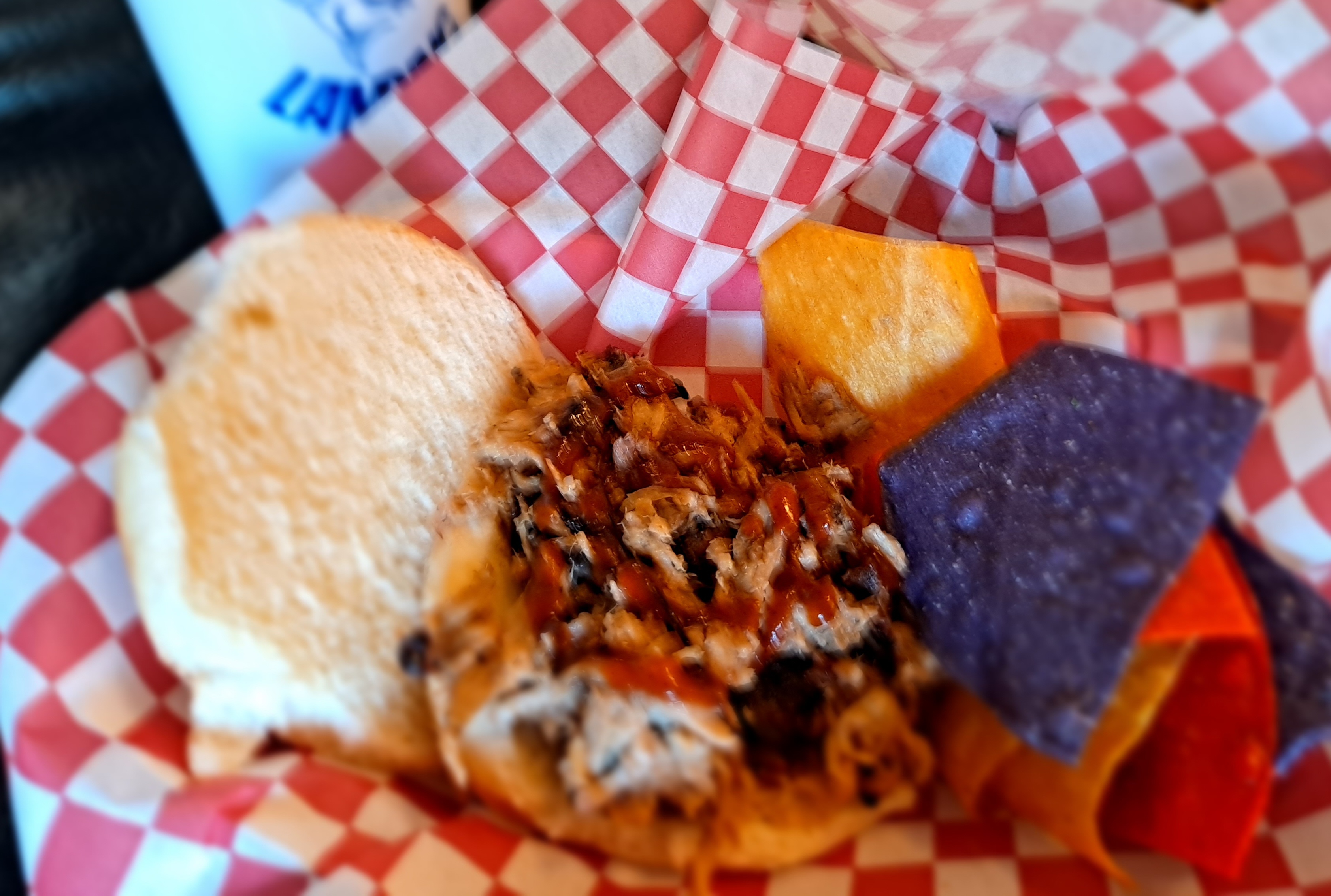 A huge portion of tortillas topped with cheese and a hefty load of our Barbecue smoked to perfection in house. Our house made mild barbecue sauce and jalapenos available for customer application. Option to substitute fries for chips at no extra charge.