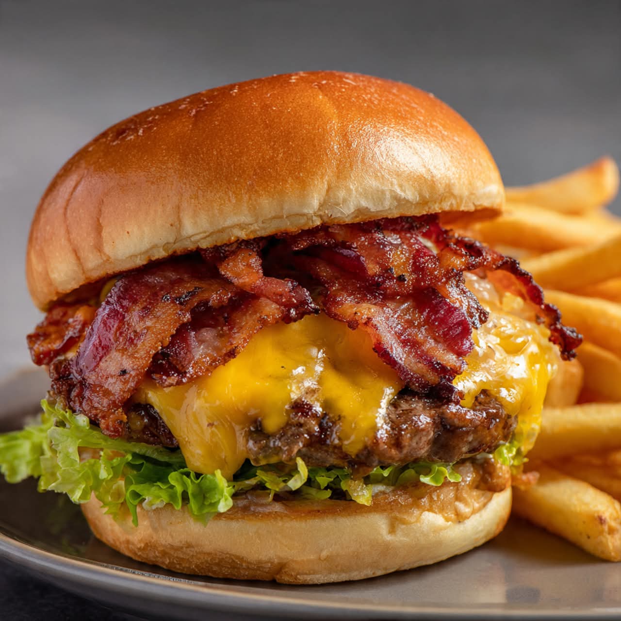 1/3 beef patty cheddar bacon lettuce tomato. Choice of ketchup Mustard mayo.